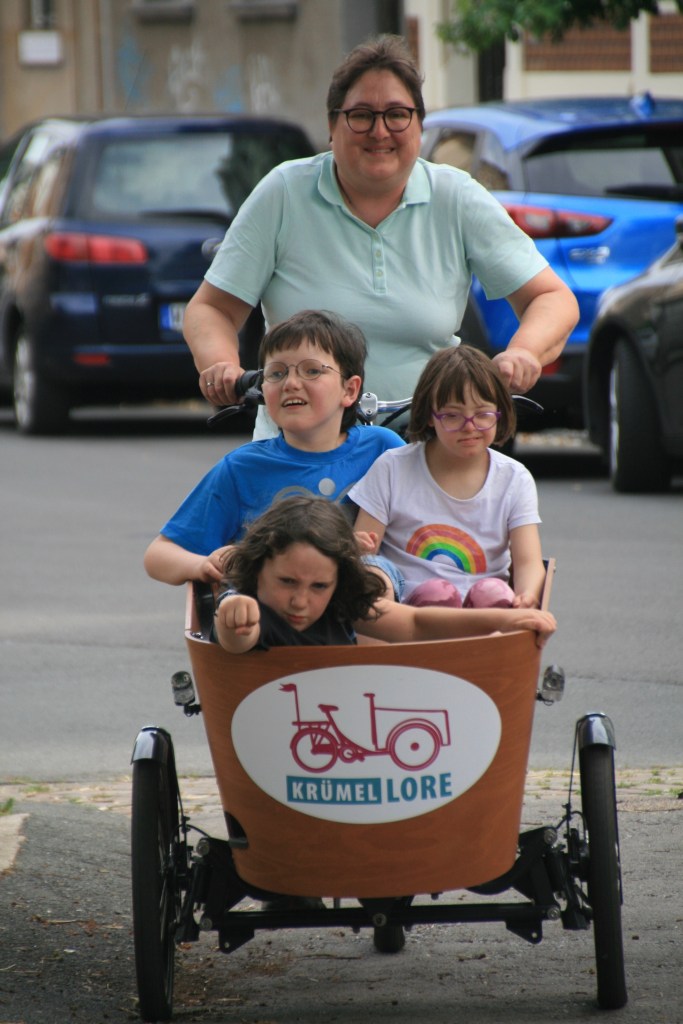 Der PottsBlitz. Der Motor hilft beim Beschleunigen bis 25 km/h. Der verlängerte Radstand kann auf den ersten Metern ungewohnt sein, danach kann man problemlos sportlicher lastenradeln und sich auch mal in die Kurven legen.